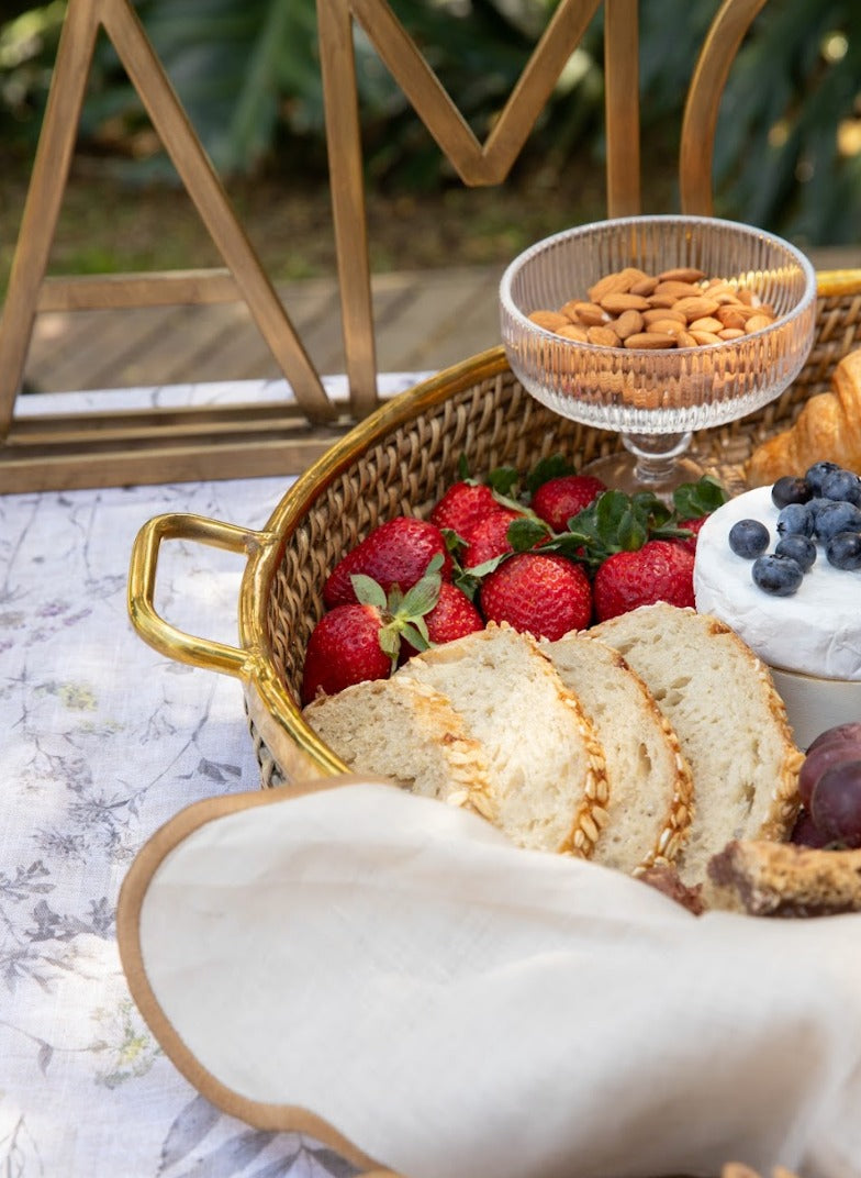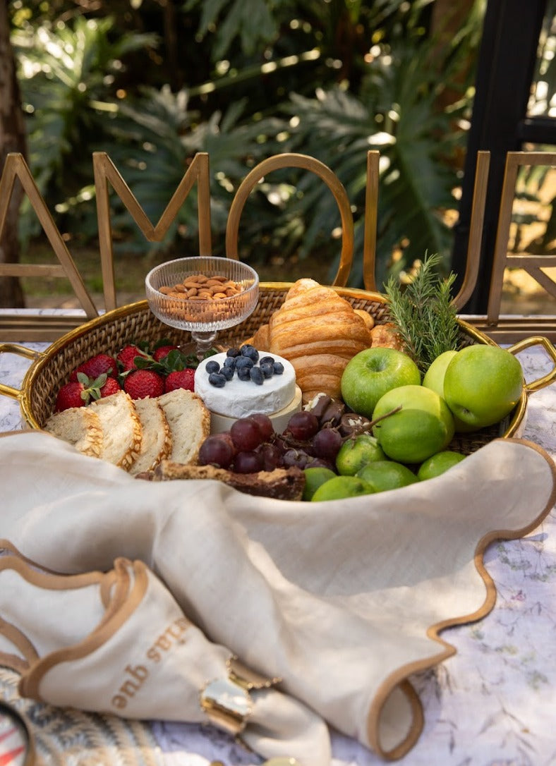 Bandeja Tejida Redonda Herraje Dorado