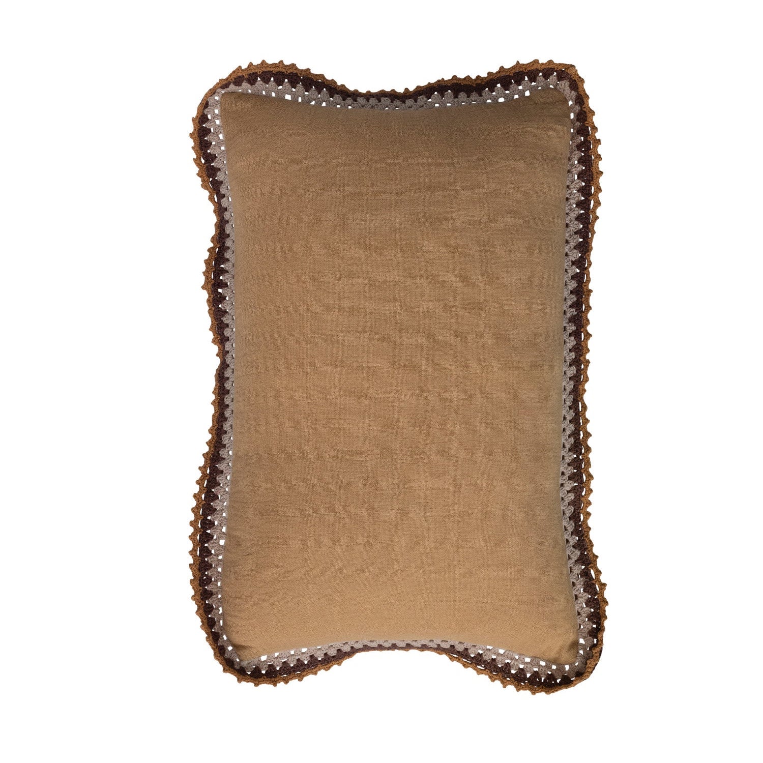 Cojín rectangular cream elaborado en algodón y poliéster con detalles en su borde tejido en crochet