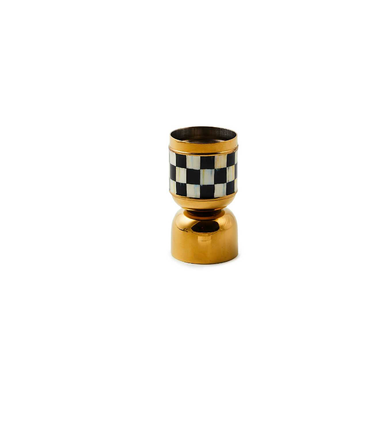 Mezcle con estilo sus bebidas favoritas con el vaso medidor dorado Courtly Check® 3260. Está hecho de acero inoxidable dorado y tiene un revestimiento de esmalte con nuestro patrón Courtly Check favorito. Tiene dos extremos con capacidad para 1 onza y 1-1/2 onzas.