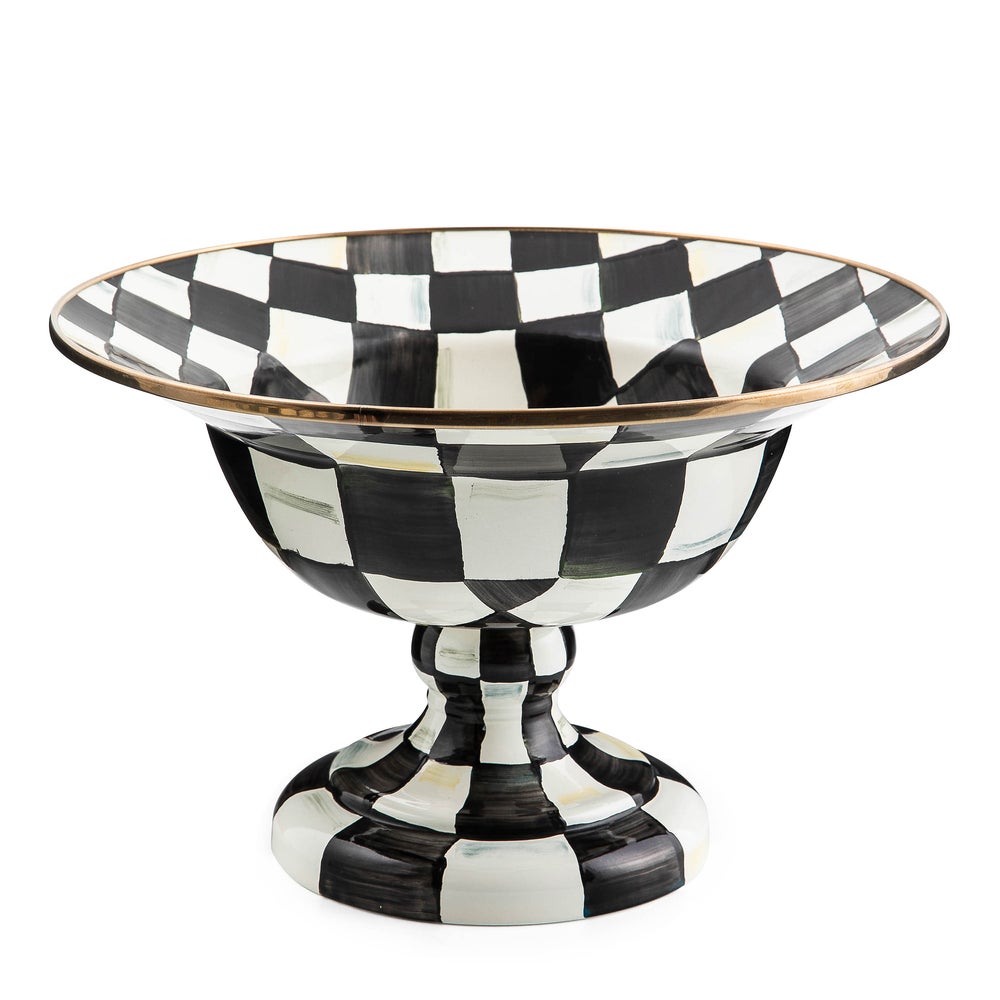Un plato indispensable para servir a la fiesta, la Gran Compota de Cheques Cortesna está decorada con nuestros característicos cuadros pintados a mano. Tiene una parte inferior de acero y un borde de acero inoxidable bronceado.