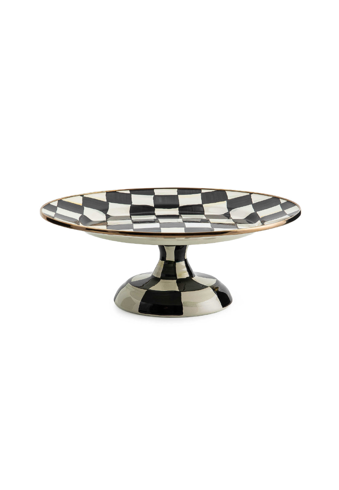 Parte inferior de acero de gran espesor, esmaltado a mano, con cuadros Courtly Checks pintados a mano y bordeado en acero inoxidable bronceado. Las piezas pueden variar debido a la naturaleza artesanal de cada producto.