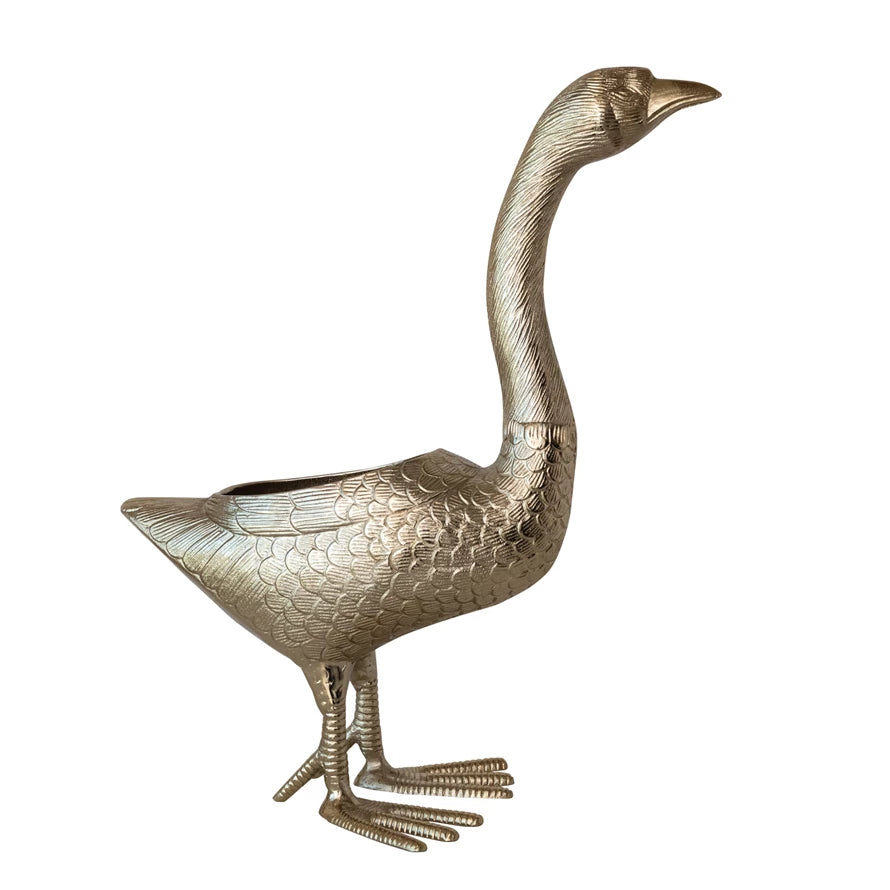 Matera en forma de ganso de aluminio fundido con acabado dorado