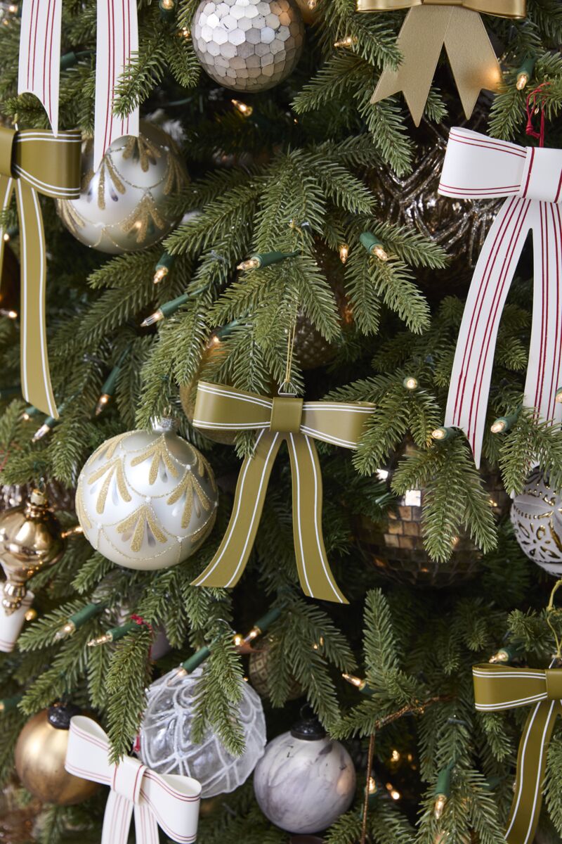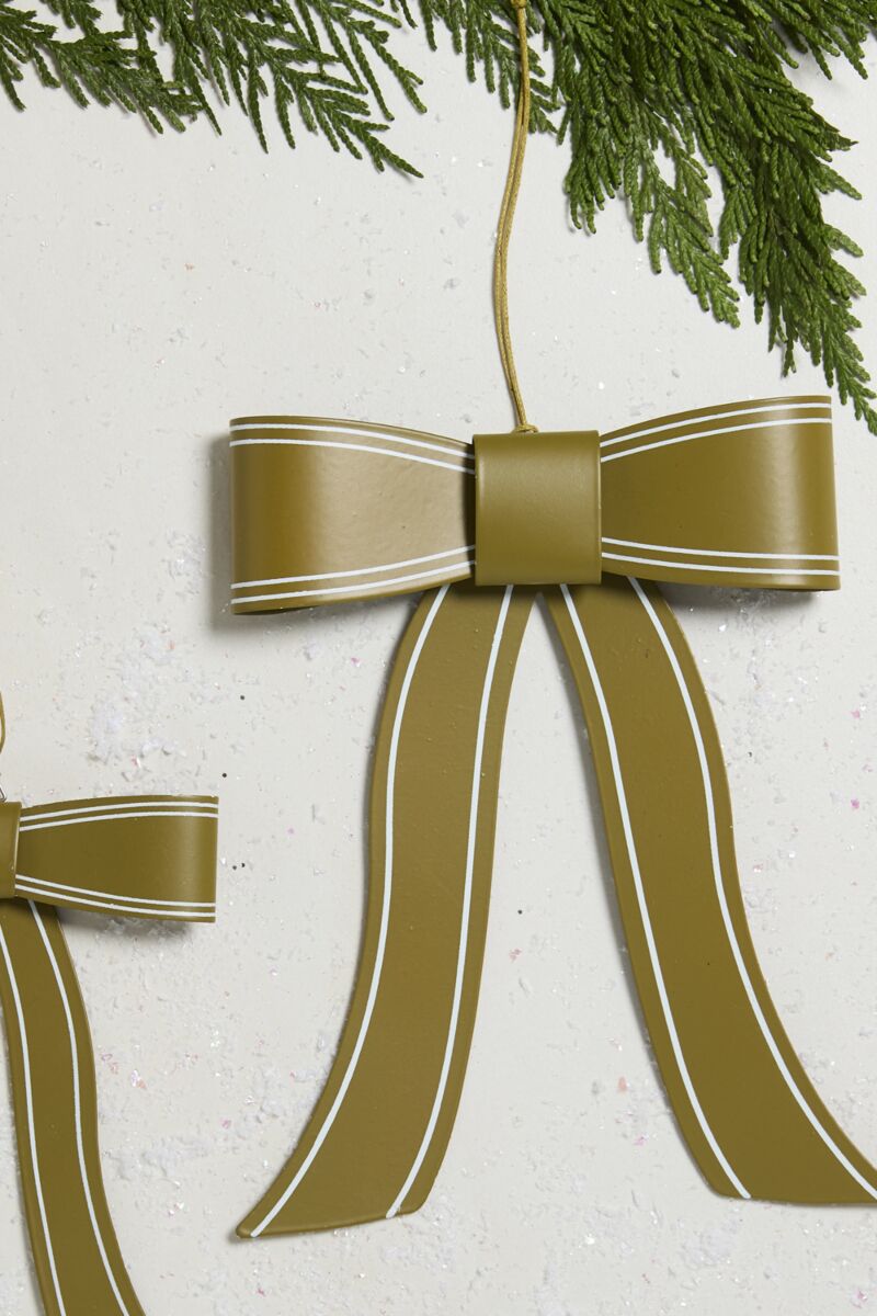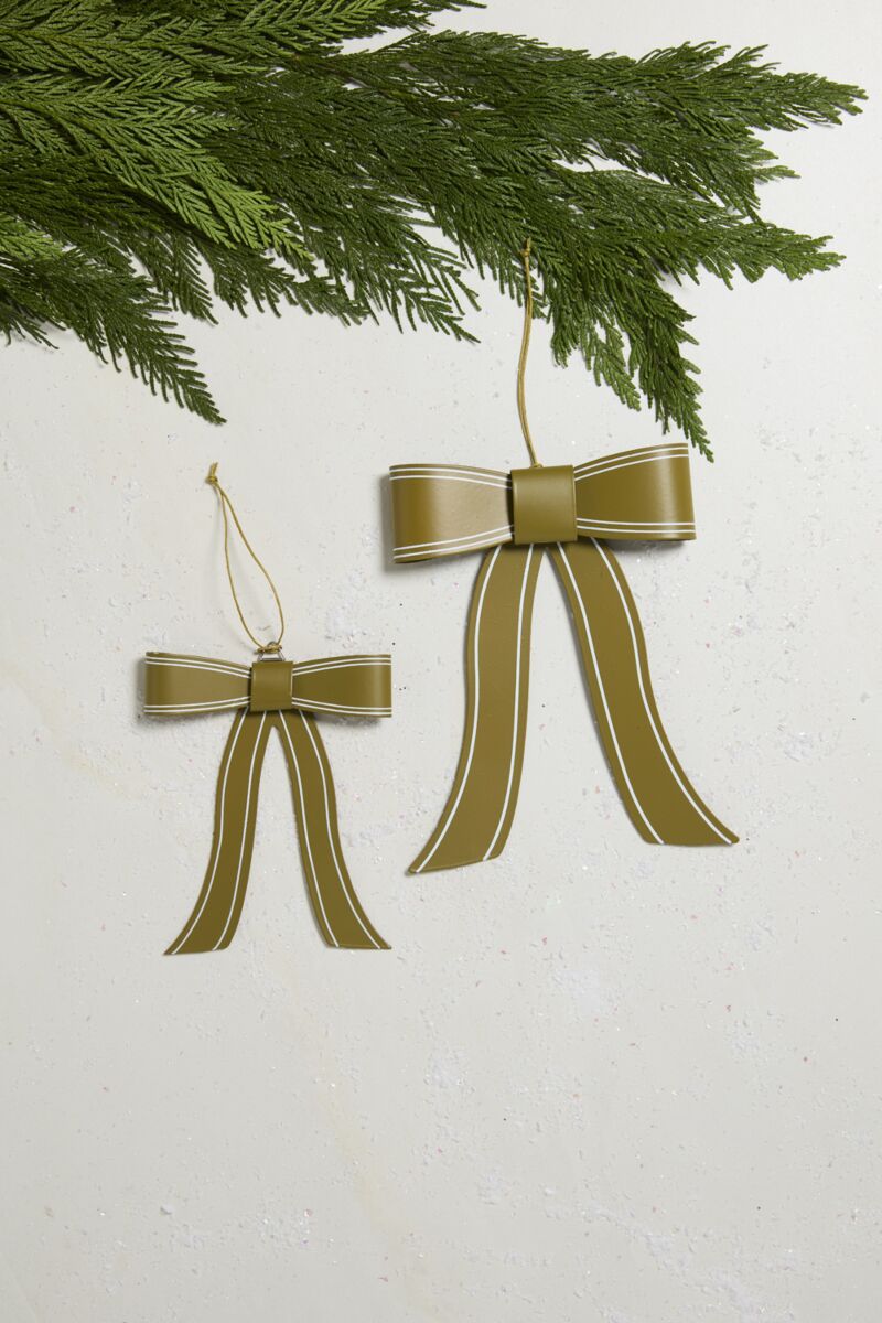 Moño navideño elaborado en latón con acabado en color verde militar