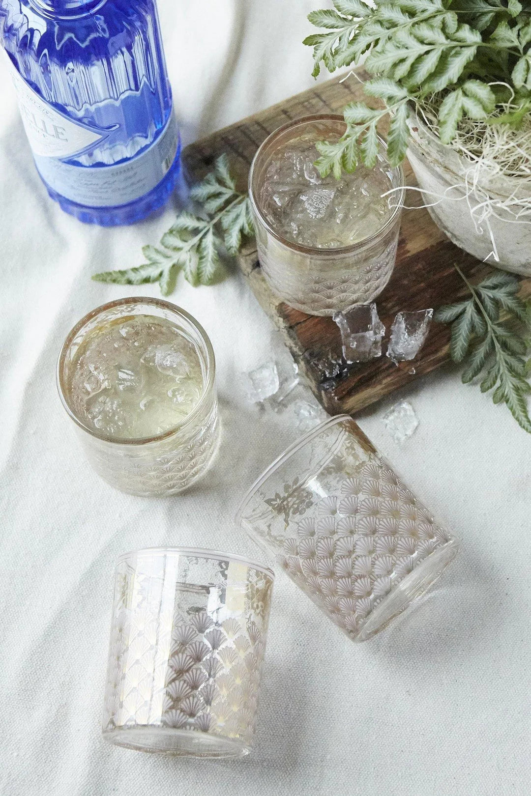 Vaso corto patina vie elaborado en vidrio con estampado de 18 quilates
