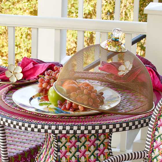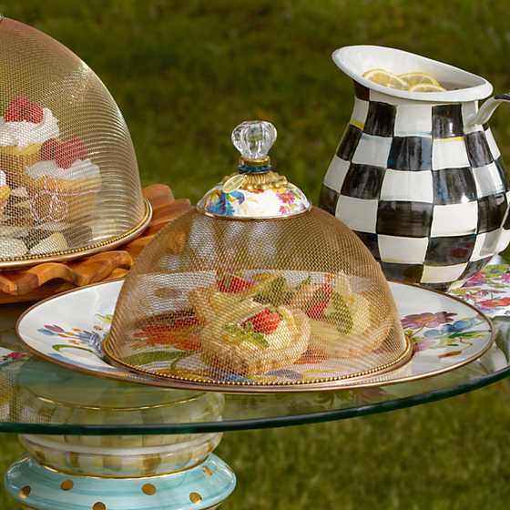 Sirva sus platos favoritos con estilo con nuestra bandeja para servir Courtly Check®. La base de acero de gran espesor está esmaltada con cuadros pintados a mano y de colores en ónix y marfil y bordeada en acero inoxidable bronceado.